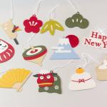 お正月っぽい「松竹梅」や「獅子舞」「富士山」「だるま」などなど全部で12種類を1つのセットにしてお届けいたします。